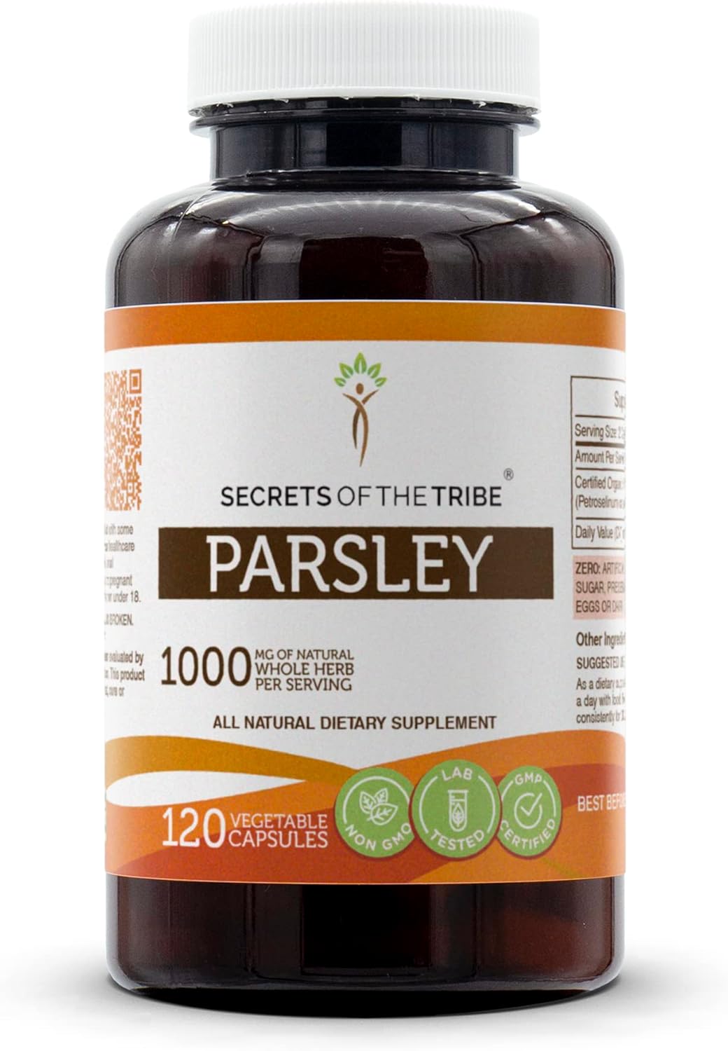 Secrets of the Tribe Parsley 120 Capsules, 1000 mg, Parsley (Petroselinum crispum) Dried Leaf (120 Capsules)