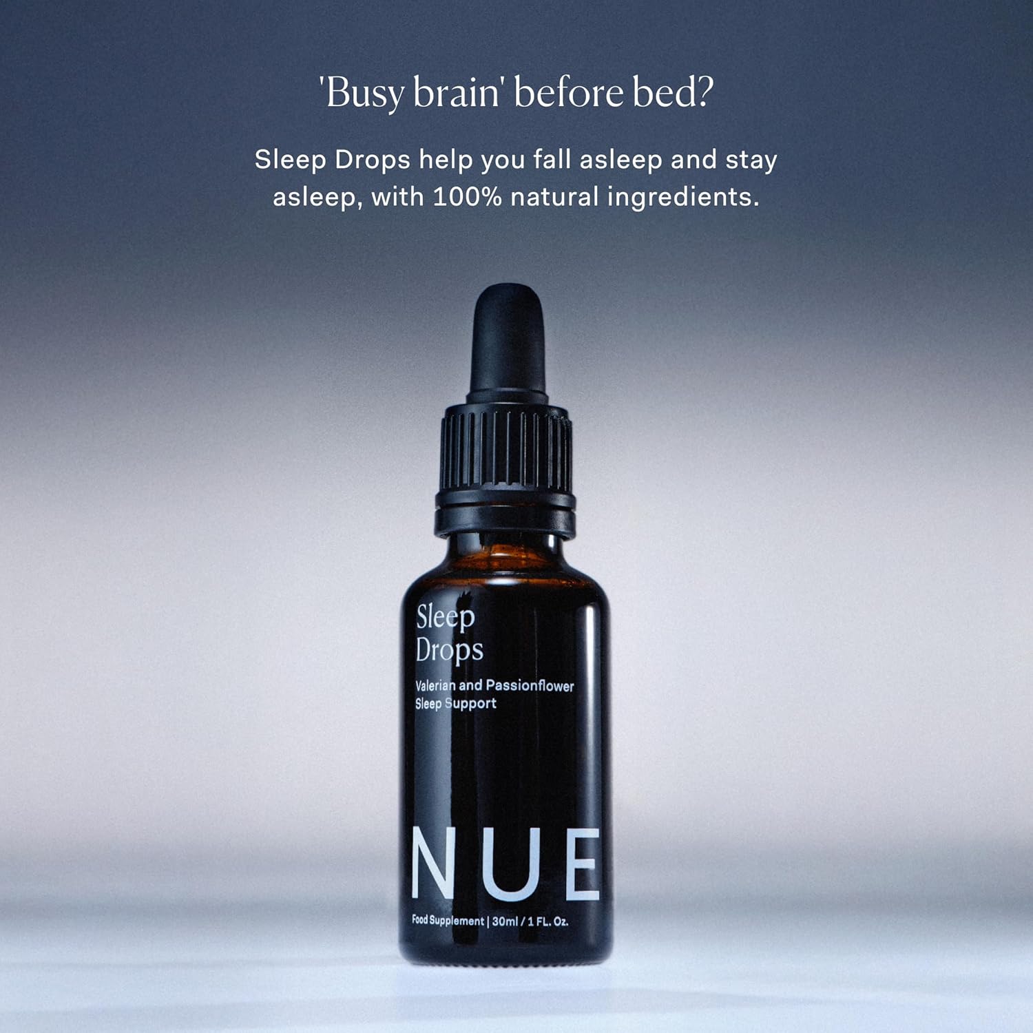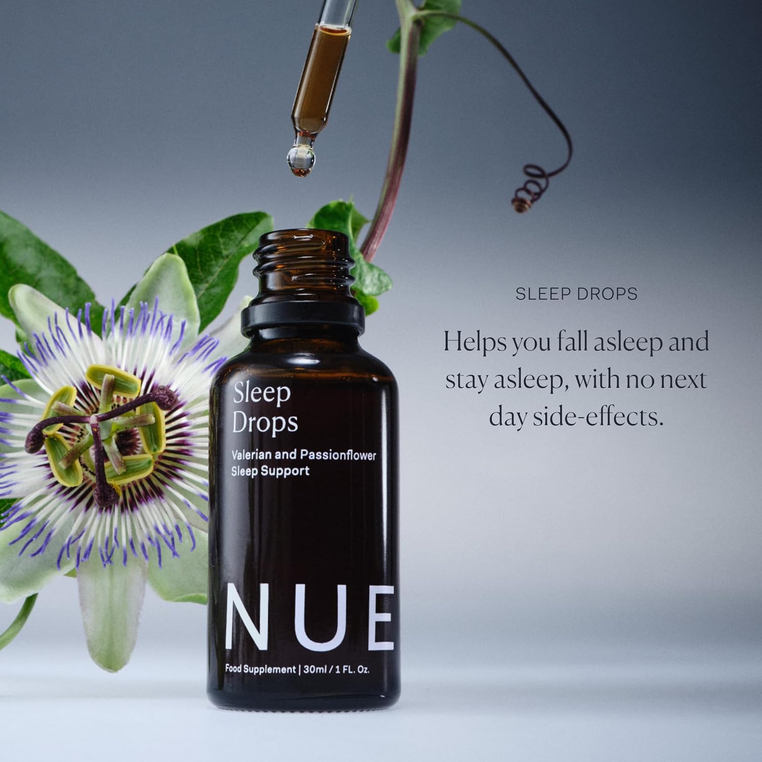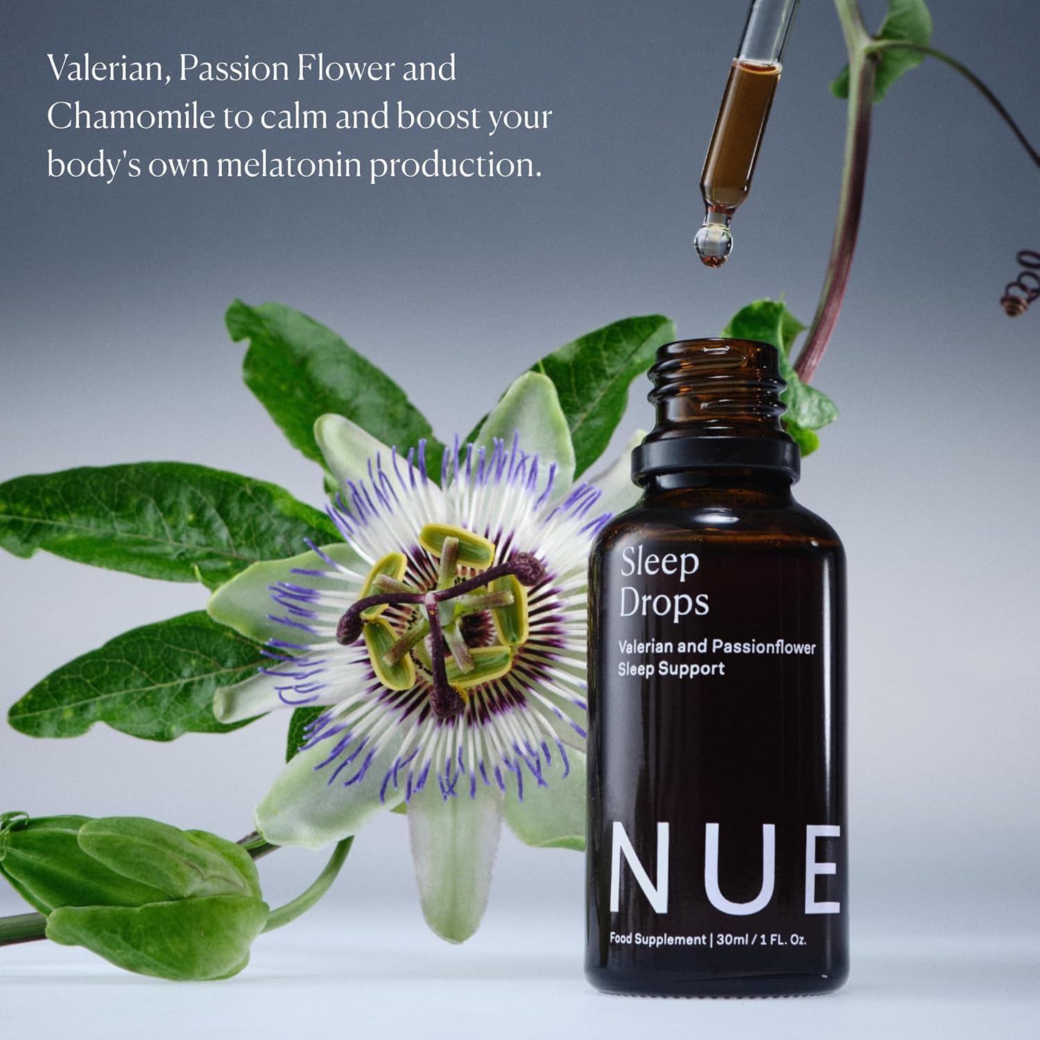 The Nue Co. Sleep Drops – Natural Sleep Support Tincture for Falling & Staying Asleep – Vegan & Cruelty-Free Sleep Supplement with Valerian Root, Chamomile & Passionflower | 30ml