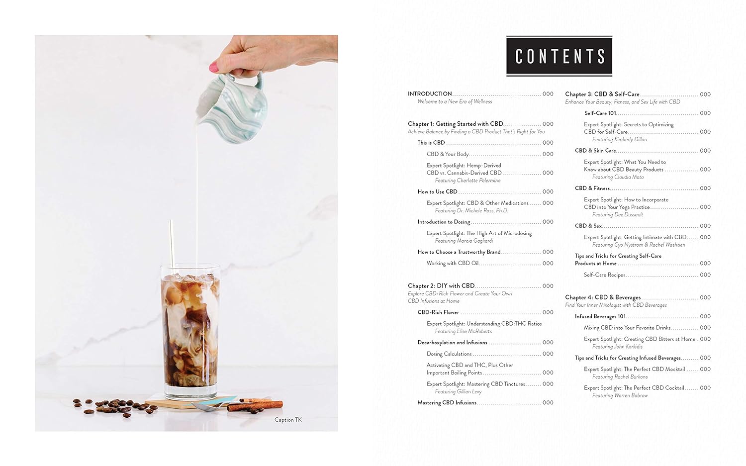 In the chapters that follow, youβll be able to explore CBD in a variety of ways:Wellness:Β Self-care is the ultimate practice that can benefit your life, your relationships, and your overall happiness. This chapter will encourage the reader to evaluate their own personal wellness and hygiene routines, providing information on how to best use CBD-rich skincare, bath, and body products. An overview of other complimentary soothing herbs is provided, as well a βhow-toβ guide for crafting CBD face masks, salves, and massage oil.Beverages and Food: Find your inner mixologist with CBD beverages, from CBD mocktails and cocktails to CBD coffee, matcha, and more. Learn how to make your own CBD oil at home and go gourmet with CBD honey, olive oil, butter and other infusionsΒ to craft delicious CBD cuisine.Β Fitness: With opioid addiction on the rise, athletes are looking for new ways to manage pain, reduce anxiety, alleviate stress, and enhance performance. This sectionΒ focuses on CBD and fitness by exploring the different ways that CBD may benefit the body during physical activities, such as yoga, running, skiing/snowboarding, and contact sports. An overview of CBD supplements and relief balms, as well as a βhow-toβ guide to making a post-workout balm to relieveΒ sore muscles.Pets and Other Uses: It turns out that our four-legged friends may also benefit from CBD. Learn how to safely share CBD with dogs and cats for anxiety reduction and pain management.Β With all this and more, includingΒ expertΒ spotlights featuring some of the top names in CBD-related businesses, this is the go-to resource youβve been looking for.