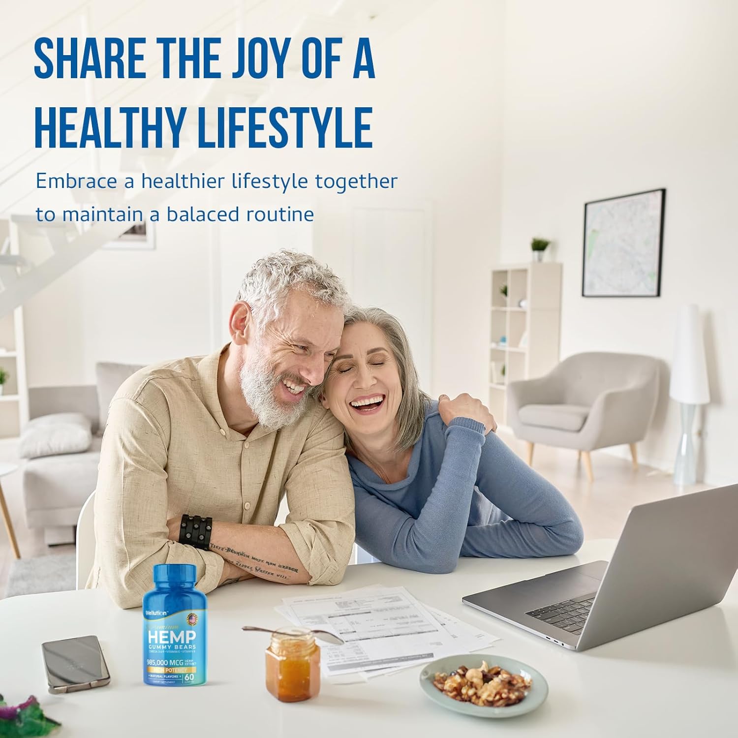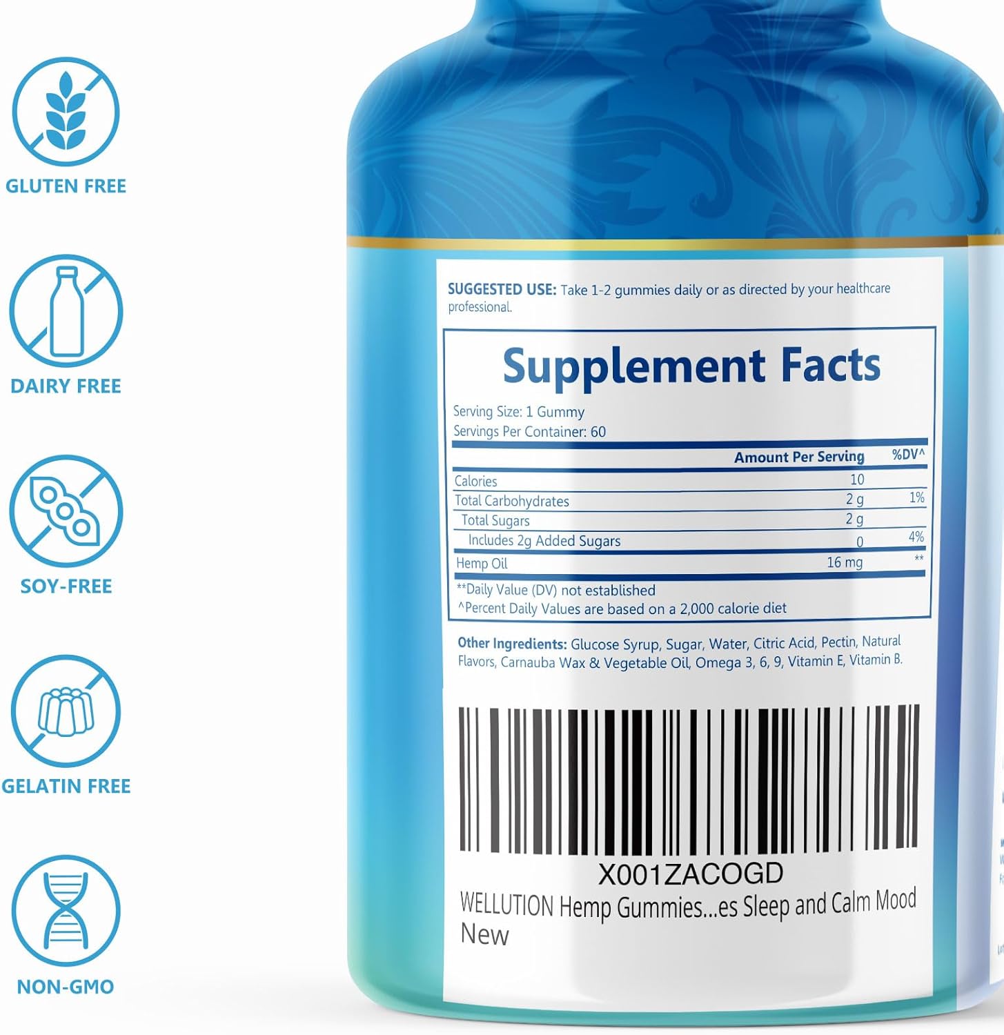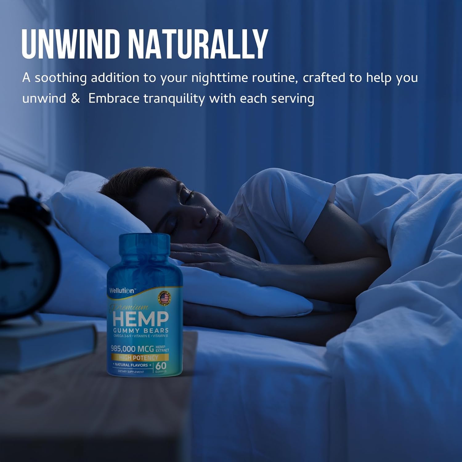 WELLUTION Hemp Gummies – High Potency 985,000 MCG – Natural Fruity Bear for Relaxation and Peace – Fast-Acting – Gluten-Free – 60ct