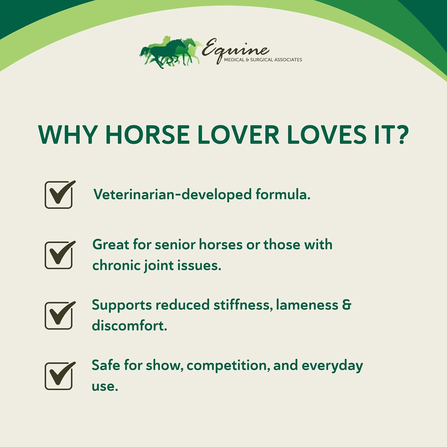 DAILY JOINT & MOBILITY SUPPORT FOR HORSES: Formulated to support normal joint function and flexibility as part of a balanced equine diet. Suitable for horses in training, performance programs, or regular daily activity.
