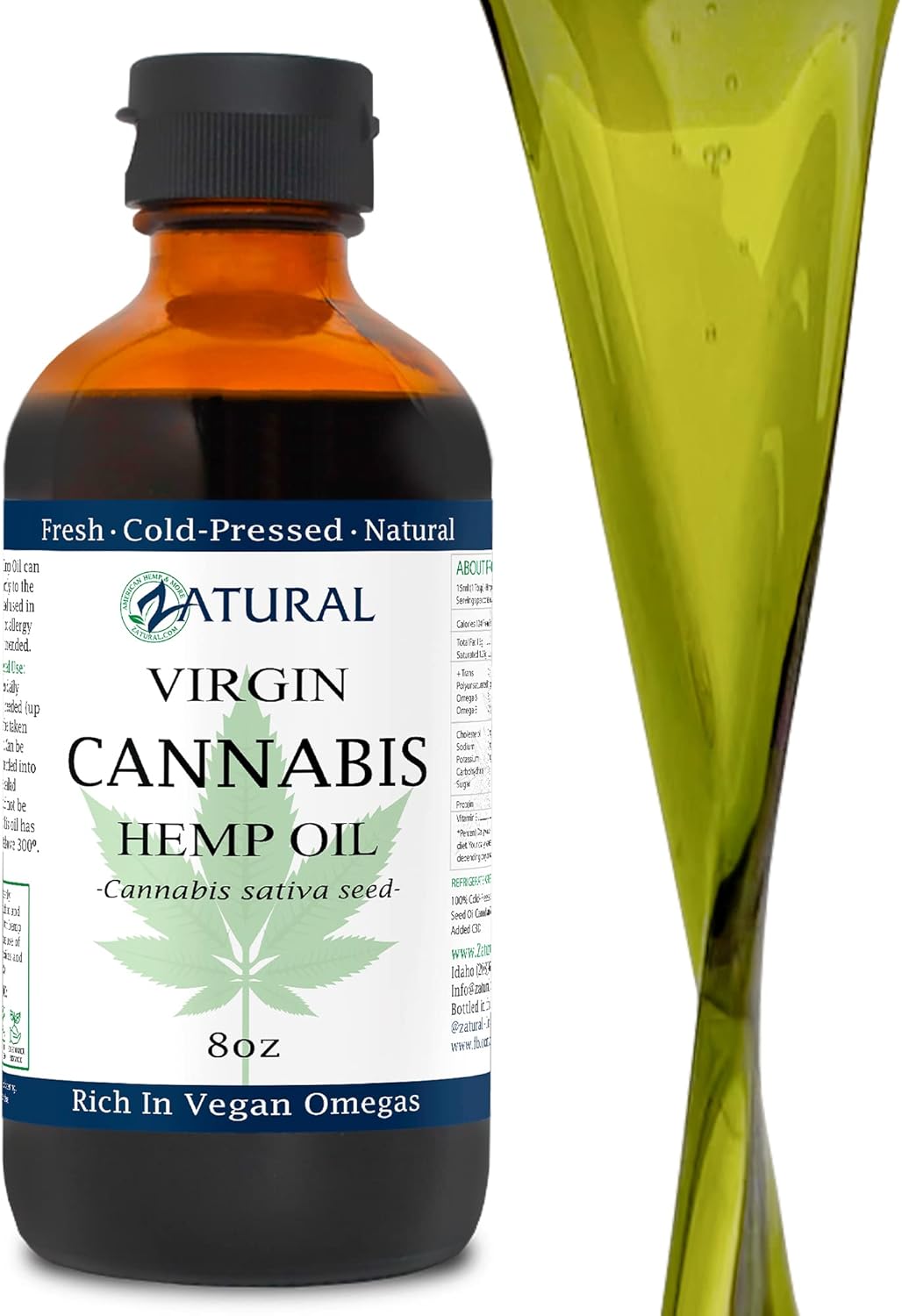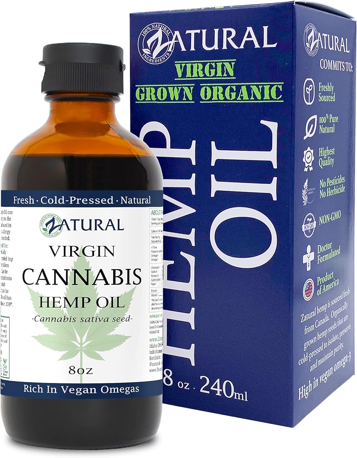 Zatural 100% Pure Hemp Seed Oil – Food Grade & Cold Pressed – Virgin Hemp Oil for Cooking, Smoothies, and Salads – Rich in Vegan Omega 3, 6, 9 – Natural Skin & Hair Moisturizer (8 Ounce)