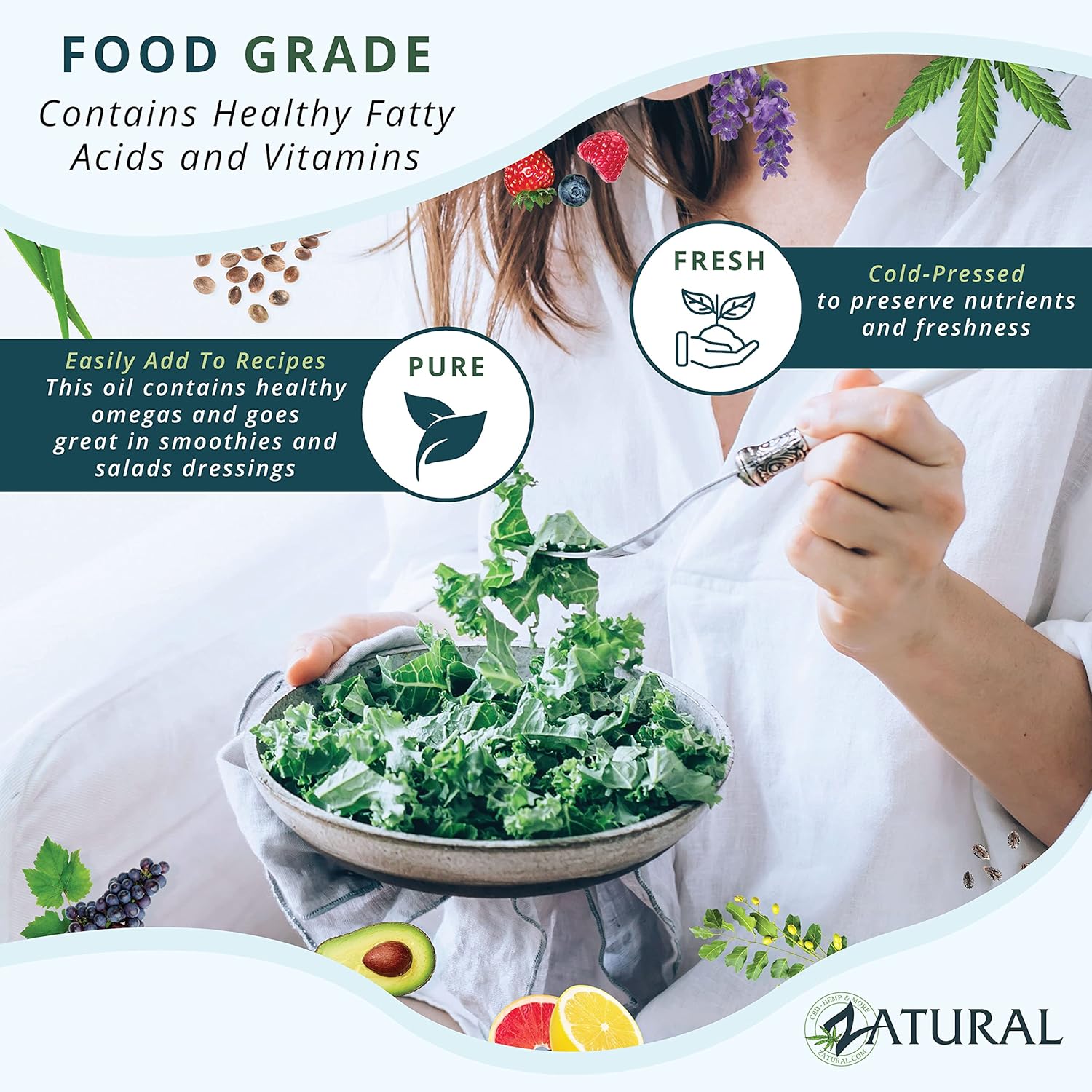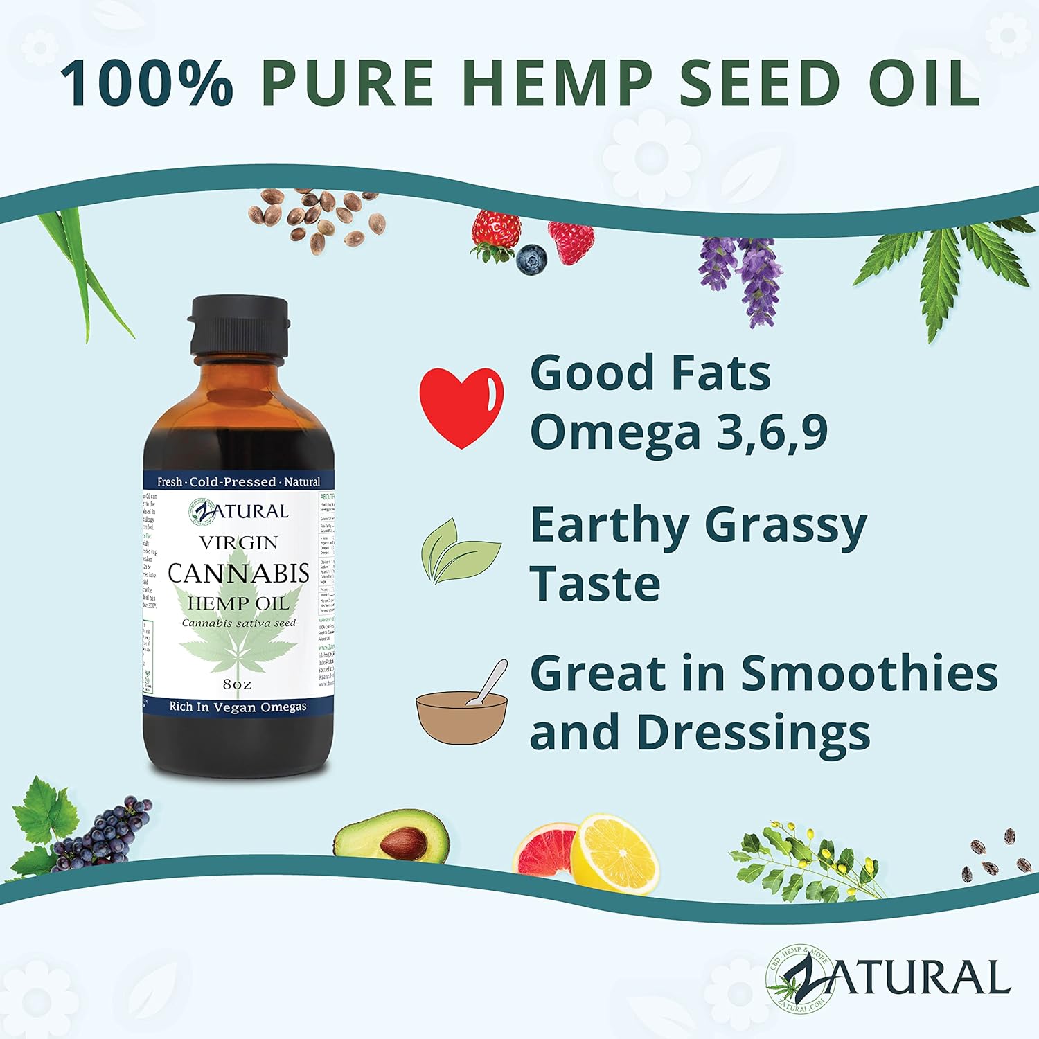PREMIUM FOOD GRADE PURITY: Zatural Hemp Seed Oil is 100% pure, raw, and food-grade. Cold-pressed to preserve its delicate nutritional profile, it offers a delicious, mild nutty flavor that is perfect for those seeking a plant-based nutritional boost.